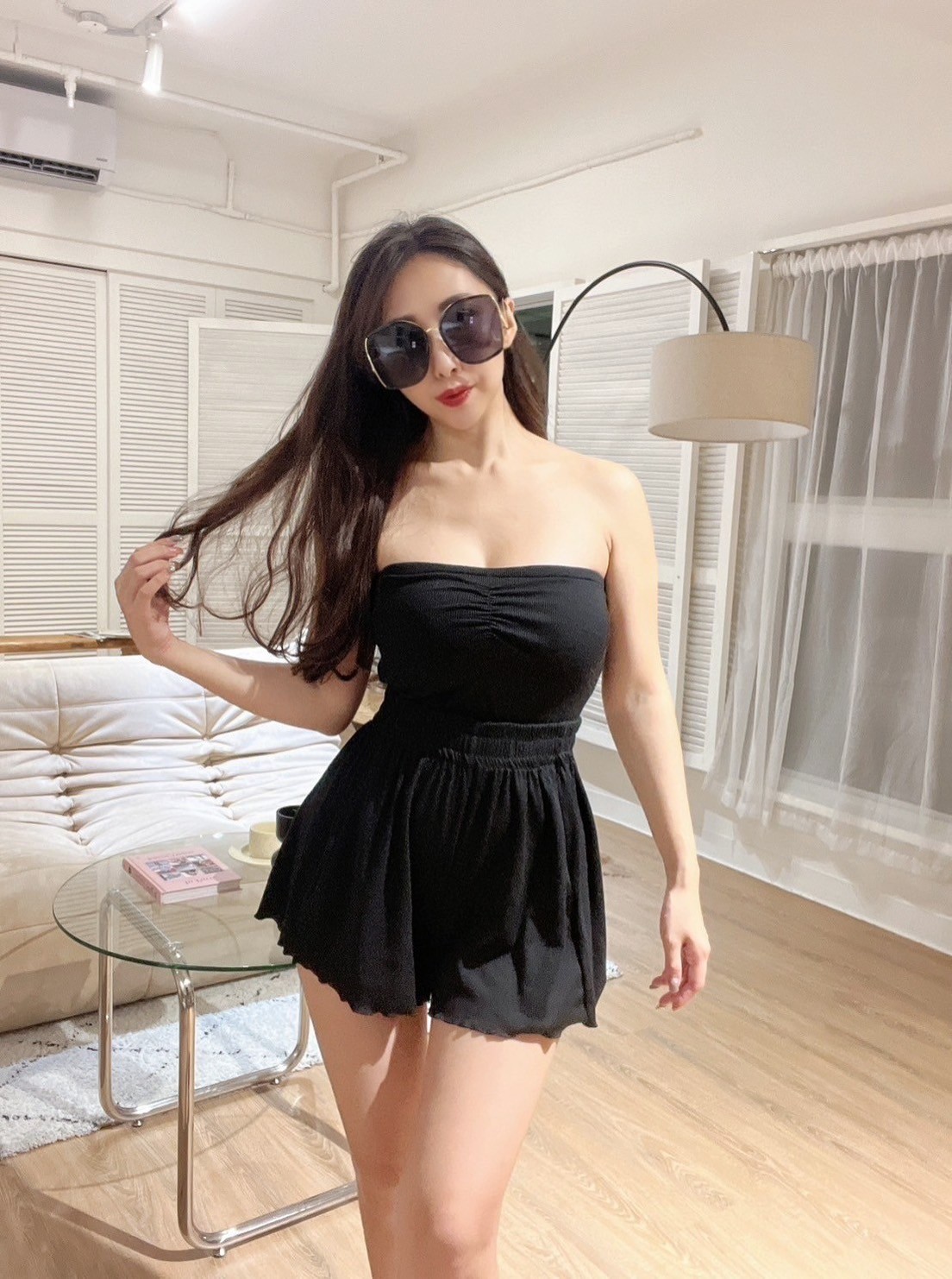 現貨|套裝抓皺胸墊平口+褲裙